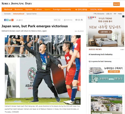 Sous le titre "La magie de Park Seo Seo amène le Vietnam U23 en finales", le site news.joins.com est revenu sur les trois victoires du Vietnam, y compris celles face au Bruneï (6-0) et à l’Indonésie (1-0), avant de souligner le succès probant contre l’U23 Thaïlande (4-0).
