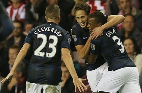 | Le jeune Adnan Januzaj (centre), auteur d'un doublé pour le Manchester United sur le terrain de Sunderland, le 5 octobre. Photo : AFP/VNA/CVN |