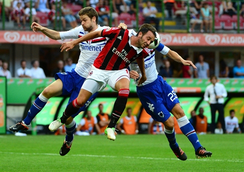 | L'AC Milan (centre) est parti du mauvais pied dans la saison 2012-2013 du Championnat d'Italie, en se faisant surprendre sur sa pelouse par la Sampdoria Gênes (1-0) le 26 août. Photo : AFP/VNA/CVN |
