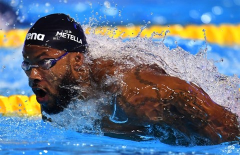 | Le nageur français Mehdy Metella lors de la finale du 100m papillon des Championnats de France en petit bassin, le 15 novembre à Montpellier. |