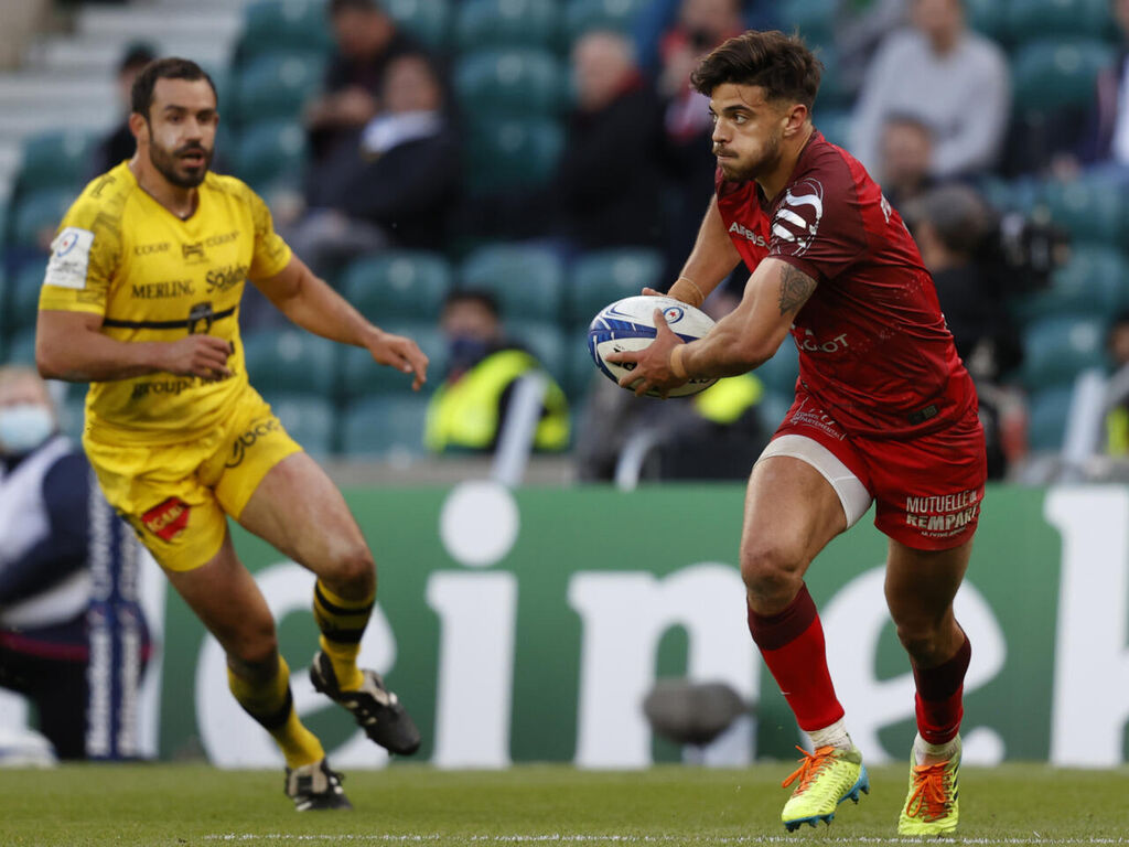 | L'ouvreur toulousain Romain Ntamack lors de la finale de Champions Cup opposant Toulouse à La Rochelle à Twickenham, le 22 mai 2021. |