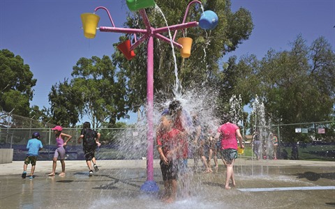 | Des enfants jouent dans un parc aquatique de Californie (États-Unis) pour éviter la vague de chaleur, en 2019. |