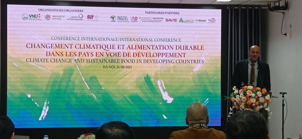 La conférence internationale sur le "Changement climatique et alimentation durable dans les pays en voie de développement" a été co-organisée en présentiel et à distance par l’IFI, l’Organisation internationale de la Francophonie (OIF) et l’Agence universitaire de la Francophonie (AUF), en coopération avec l’Institut d’études sur l’Afrique et le Moyen-Orient (IAMES) relevant de l’Académie des sciences sociales du Vietnam, l’Institut français du Vietnam (IFV), celui de recherche pour le développement et l’Université de Senghor (Égypte).