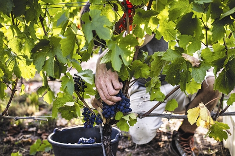 | Des chercheurs coupent des grappes de raisin à Liergues dans le Beaujolais. |