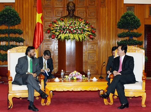 | Le Premier ministre vietnamien Nguyên Tân Dung (à droite) lors de son entretien avec le président du GIEC, Rajendra K. Pachauri, le 17 août à Hanoi. |