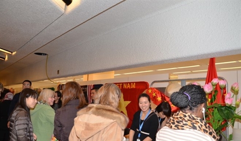 Le stand des femmes de la délégation diplomatique vietnamienne - qui a présenté des produits artisanaux et des spécialités culinaires - a suscité un vif intérêt de la part des visiteurs internationaux.