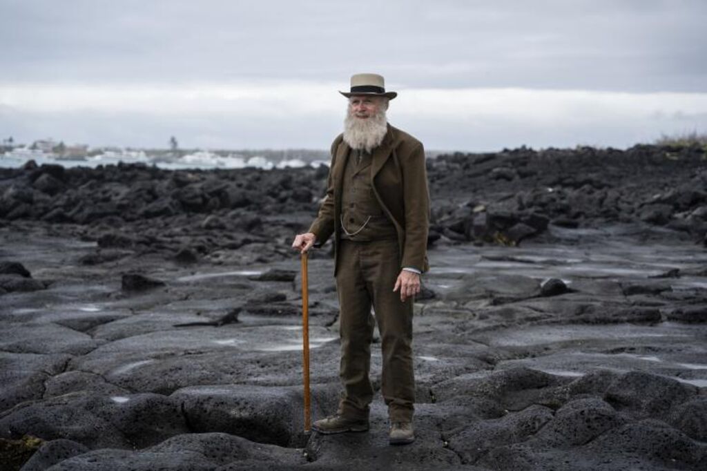 | Kenneth Noll, biologiste américain à la retraite, grimé en Charles Darwin, à Puerto Ayora, dans l'archipel des Galapagos, le 28 septembre. |
