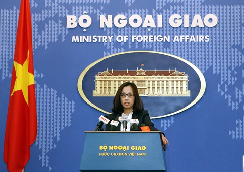 | La porte-parole adjointe du ministère vietnamien des Affaires étrangères, Pham Thi Thu Hang, lors d'une conférence de presse périodique tenue le 8 janvier à Hanoi. |