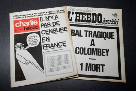 Charlie Hebdo a en effet été créé en réponse à des mesures prises par le gouvernement en 1970 pour tenter de faire taire le mensuel Hara Kiri, qui avait osé titrer, après le décès du général de Gaulle à Colombey-les-deux-églises, "Bal tragique à Colombey, un mort". Une allusion à l'incendie d'un dancing qui avait fait plus d'une centaine de morts ce mois-là.