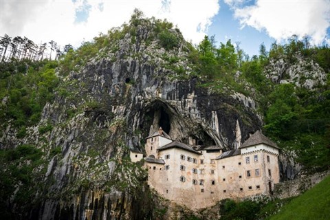 | Le château de Predjama, construit dans l'ouverture d'une grotte, le 25 mai près de Postojna, en Slovénie. |