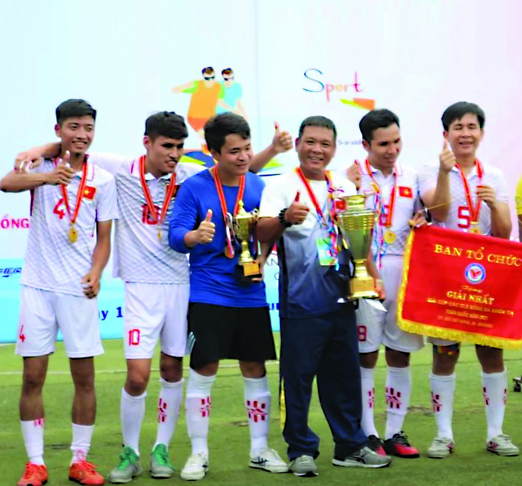 | M. Thang (3e à droite) et ses élèves ont reçu un prix lors d’un événement sportif pour les personnes handicapées. |