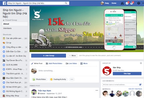 | Le groupe "Ship tim nguoi, nguoi tim ship" à Hanoï sur le réseau social Facebook. |