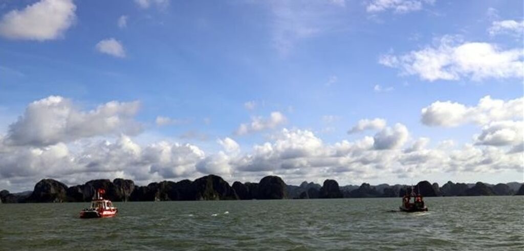 | Des bateaux de la Police de Quang Ninh participent aux recherches des victimes du bateau touristique Vinh Xanh 58 dans la baie de Ha Long. |
