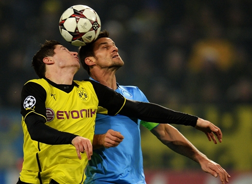 Dortmund (GER) - Naples (ITA) 3-1 : tenu de s'imposer pour espérer poursuivre l'aventure, le Borussia a réussi sa mission et a même fait mieux, puisque ses deux buts d'écart lui assurent un avantage sur le Napoli en cas d'égalité de points. Battus au San Paolo (2-1) à l'aller, les Allemands devanceraient alors les Italiens à la différence de but particulière, selon la règle UEFA en vigueur. Reus sur penalty, Blaszczykowski et Aubameyang ont donné de l'air au finaliste de la précédente édition qui devra s'imposer à Marseille pour espérer continuer sa route.