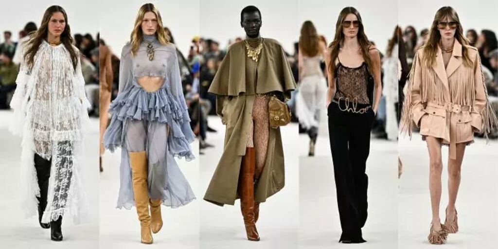| Des modèles présentant les créations de Chloé pour la collection Prêt-à-porter Femme Automne-Hiver 2024/2025 dans le cadre de la Fashion Week de Paris, le 29 février. |