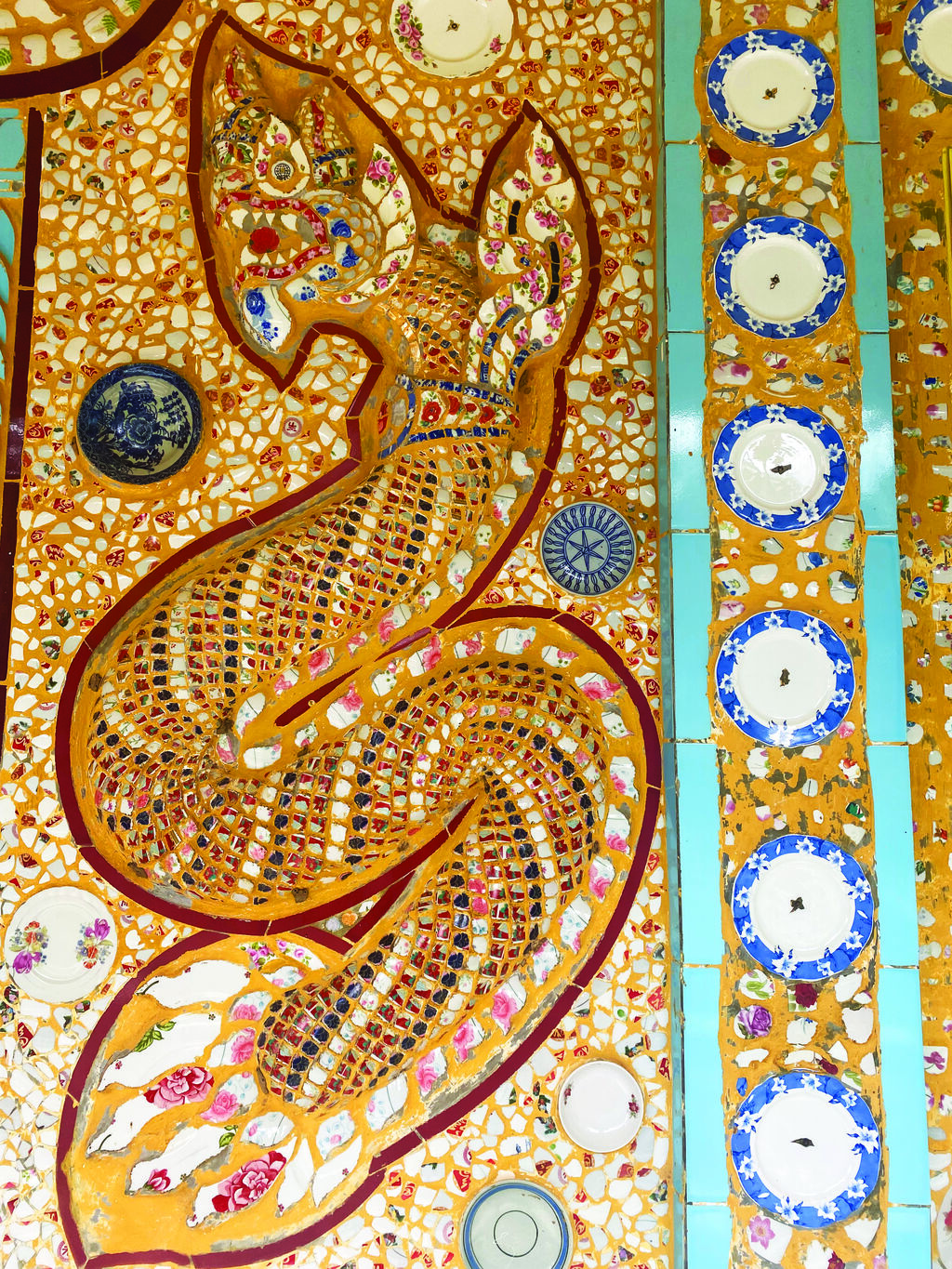 | Un demi-siècle après la reconstruction de la pagode, les couleurs des bols et des assiettes n’ont pas perdu de leur vivacité. |