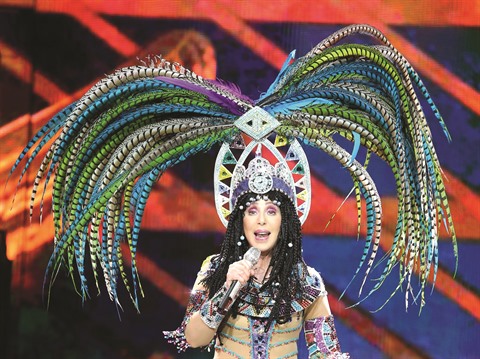 | La chanteuse Cher, toujours sur scène avec ses tenues les plus hallucinantes. |