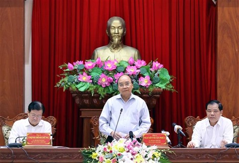| Le Premier ministre Nguyên Xuân Phuc (centre) lors de la réunion avec les représentants des localités du delta du Mékong, le 23 septembre à Tiên Giang. |