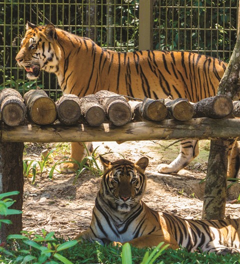 | Deux tigres de Bengal au zoo de Phú Quôc, province méridionale de Kiên Giang. |