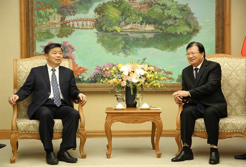 | Le vice-Premier ministre Trinh Dinh Dung (droite) reçoit le vice-gouverneur de la province du Guangdong, Ouyang Weimin, à Hanoï le 27 août. |