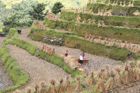 Ces aménagements réalisés par les minorités ethniques (Nùng et Dao pour la plupart) n’ont pas une vocation esthétique, mais bien fonctionnelle. En octobre, les rizières en terrasses prennent une tournure mordorée au fur et à mesure que les épis arrivent à maturité. S’étendant à perte de vue, elles se marient parfaitement avec la nature changeante au fil des quatre saisons. Arpenter les sentiers tracés dans la pente est une expérience à vivre absolument, avec les nuages qui jouent à cache-cache avec les sommets, le jaune des rizières prêtes à être récoltées, le vert des collines de théiers, les toits des maisons Dao qui émergent au milieu des rizières... Ces éléments, mis bout à bout, forment un tableau harmonieux. Les rizières de Hoàng Su Phi sont les plus emblématiques du Vietnam. Elles ont été classées en 2012 patrimoine national par le ministère de la Culture, des Sports et du Tourisme.