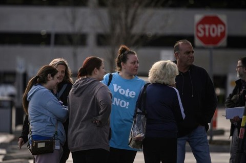 Par petits groupes ou seuls, les salariés rejoignent la queue. La majorité de ceux interrogés vendredi matin 25 mars par l'AFP penchent pour le non.