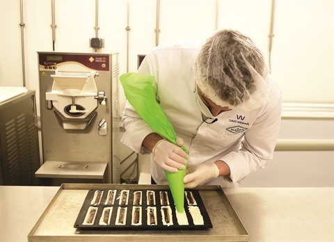 | Le glacier David Wesmaërl prépare des barres glacées à Lille. |