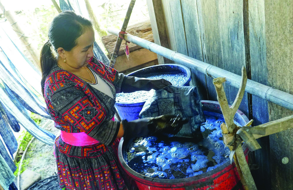 | Le tissu est ensuite teint avec de l’indigo, une méthode traditionnelle. |