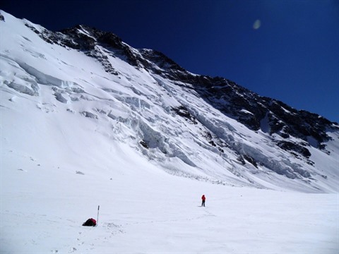 | Des scientifiques observent le glacier Cerro Bologna dans la région de Santiago au Chili, le 17 janvier. |