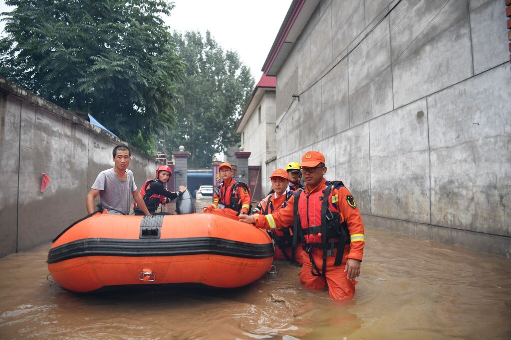 | Évacuation des habitants de zones inondées à cause de fortes pluies en Chine. |