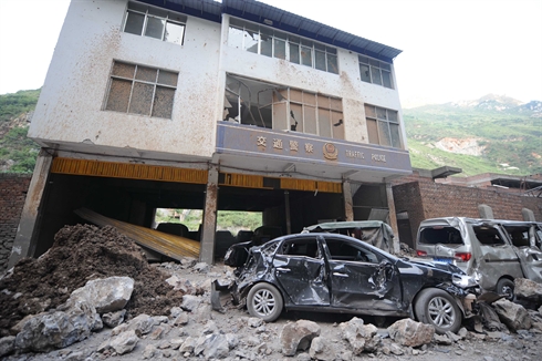 | Dégâts après un tremblement de terre d'une magnitude de 5,6 dans le Sud-Ouest de la Chine. Photo : Xinhua/VNA/CVN |