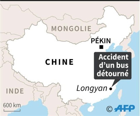 Le drame s'est produit vers 15h20 (07h20 GMT) dans la ville de Longyan, dans la province du Fujian, avait révélé le quotidien local Minxi Ribao. Un policier figure parmi les personnes décédées. Interrogée par l'AFP, la police locale s'est refusée à tout commentaire. Des vidéos diffusées sur les sites de plusieurs médias comme Caixin et Global Times montrent un autobus vide arrêté au milieu d'une avenue, avec l'avant enfoncé.