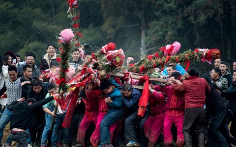 Cette lutte fictive, faite de joyeuses échauffourées de part et d'autre, dure plusieurs heures avant que les hommes faisant barrage acceptent de céder le passage à la pierre-Bouddha, qui est accueillie au village à grand renfort d'exclamations.