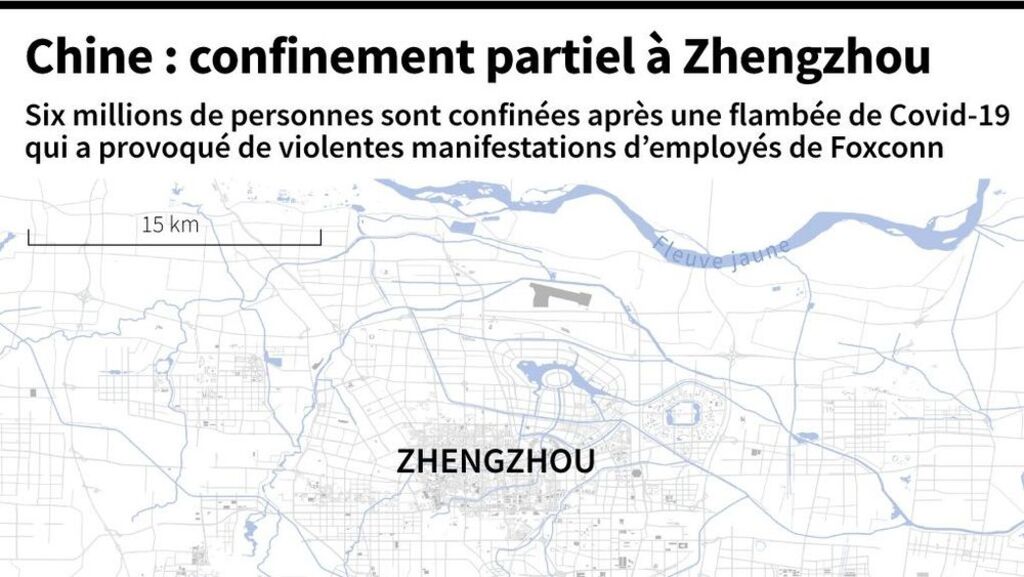 Le confinement survient après de violentes manifestations de centaines d'employés cette semaine, sur le site de l'usine Foxconn située en banlieue de la ville, qui emploie plus de 200.000 personnes et surnommé "iPhone city" car c'est la plus grosse usine au monde de fabrication du téléphone d'Apple.
