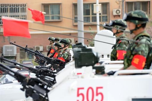 | Un convoi des forces de sécurité chinoises à Hetian, dans la région musulmane du Xinjiang, dans le Nord-Ouest de la Chine, le 6 juin. Photo : AFP/VNA/CVN |
