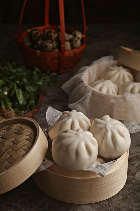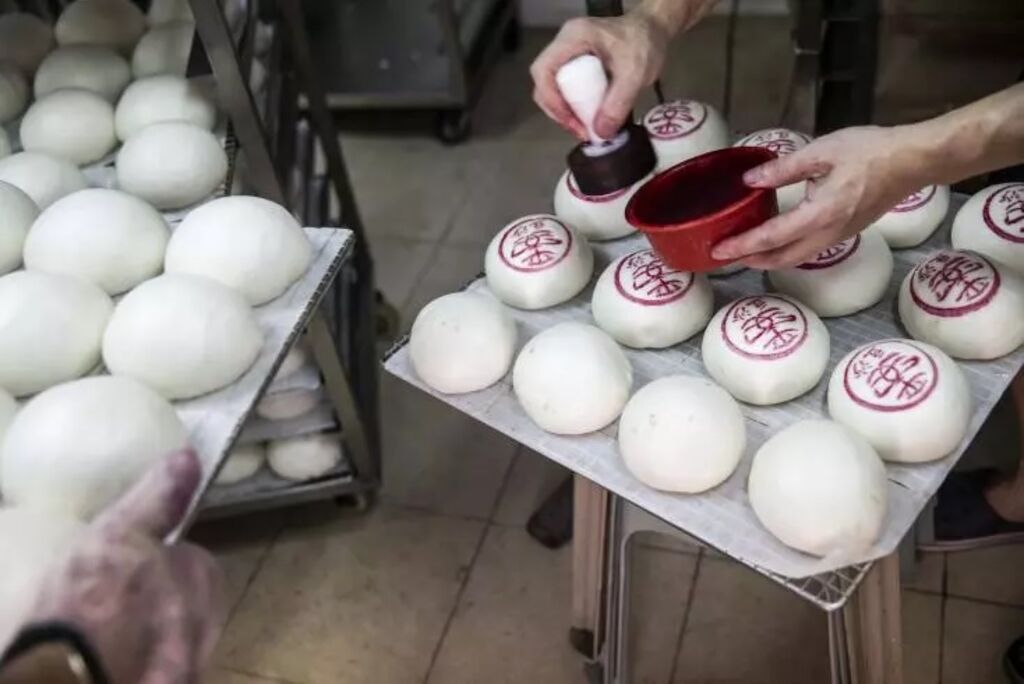 | Un artisan boulanger tamponne des buns, petits pains à la vapeur, pendant le festival du bun sur l'île de Cheung Chau, le 26 mai à Hong Kong (Chine). |