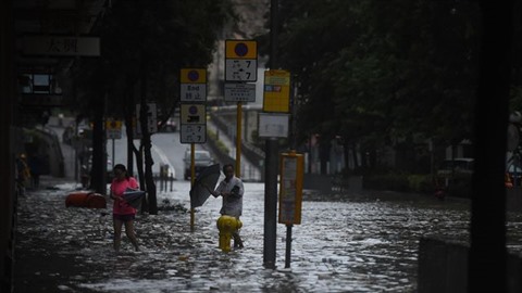 | Inondations à Hong Kong (Chine) à l'approche du typhon Hato, annoncé comme particulièrement violent, le 23 août. |