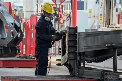 | Sur une chaîne de montage de machinerie lourde du groupe Sany à Pékin, le 15 octobre. |