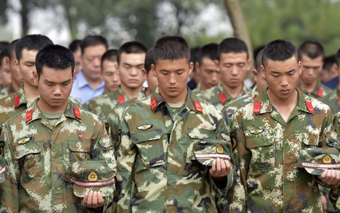 | Un moment d'hommage aux victimes des explosions d'un entrepôt dans la ville de Tianjin, le 18 août. |