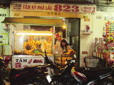 | Le chariot de phá lâu Tâm Ký, situé rue Nguyên Trai, 5e arrondissement de Hô Chi Minh-Ville. |
