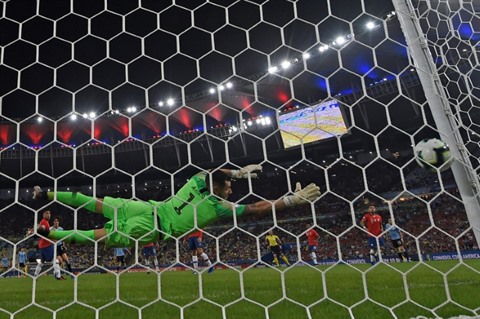 | L'Uruguayen Edinson Cavani buteur lors du match de la phase de groupes de la Copa América face au Chili, à Rio de Janeiro, le 24 juin. |