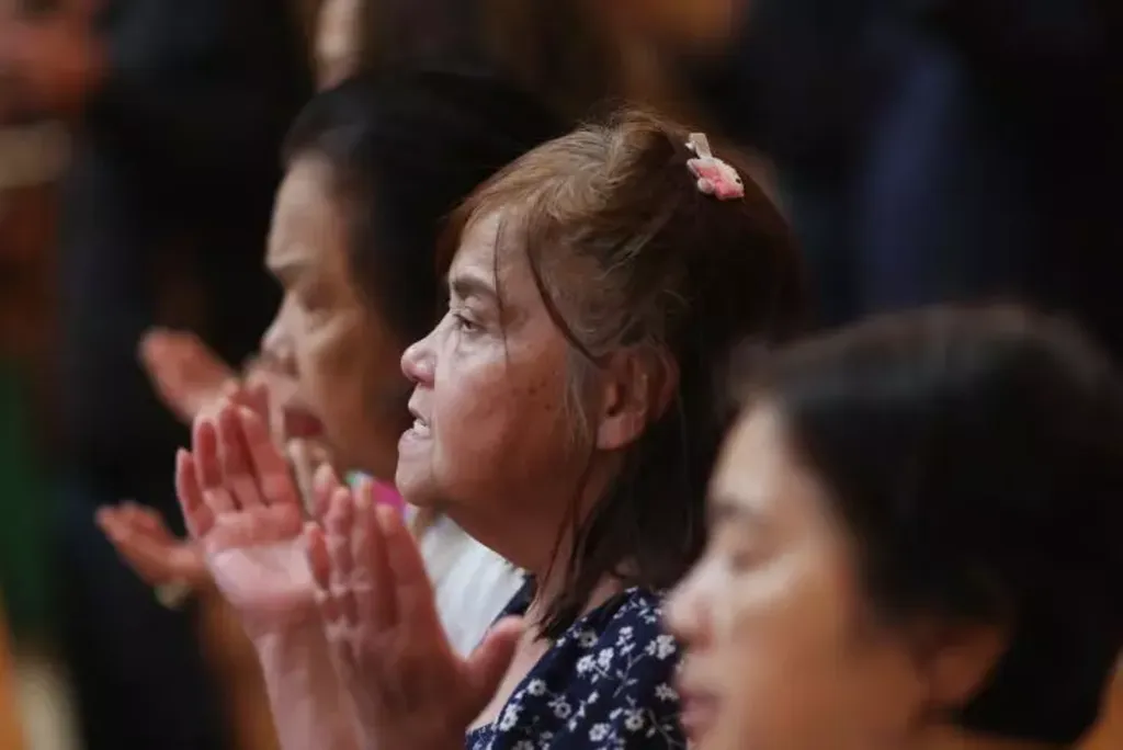 | Des fidèles à Los Angeles, en Californie, le 8 mai. |