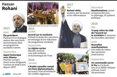Le président Trump a claqué la porte en mai, au grand dam de ses alliés européens, de l'accord nucléaire de 2015, visant à empêcher la République islamique de se doter de la bombe atomique. Il a rétabli toutes les sanctions contre Téhéran, et espère faire plier le régime iranien pour qu'il négocie un futur traité à ses conditions draconiennes.