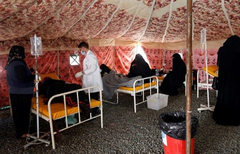 Des personnes suspectées d'être infectées par le choléra, dans un hôpital de fortune le 25 mai. Photo : AFP/VNA/CVN |