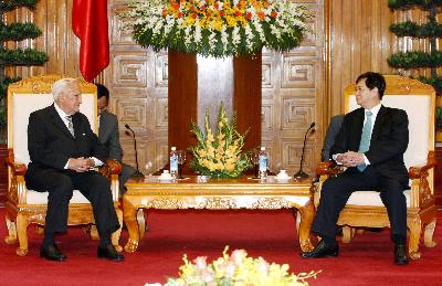 | Le sénateur Christian Poncelet (gauche), ancien président du Sénat français et le Premier ministre vietnamien Nguyên Tân Dung, septembre dernier à Hanoi. Photo : Duc Tam/VNA/CVN |