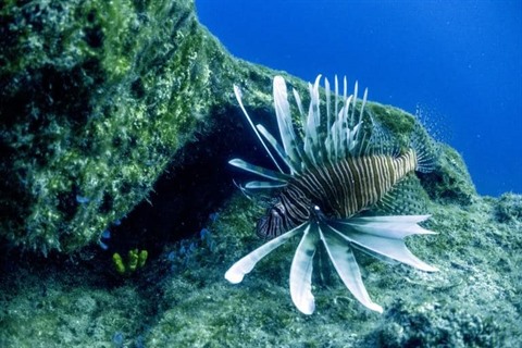 | Un poisson-lion sur le lieu-dit du "Plateau" dans la baie de Konnos au large de Chypre, le 15 janvier. |