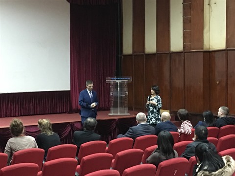 | Nicolas Dervaux, directeur de la Coordination administrative de la Délégation générale de la Fédération Wallonie-Bruxelles, échange avec les spectateurs après la projection du film "Les fleurs amères". |