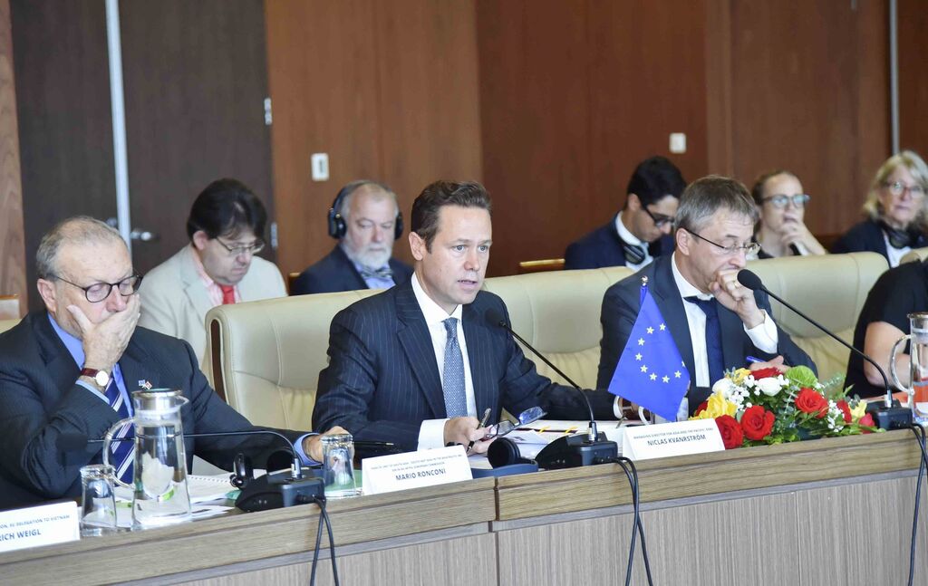| Niclas Kvarnström, directeur général de l'Asie-Pacifique de l'Union européenne (UE), prend la parole à la cinquième réunion du Comité mixte Vietnam - UE. |