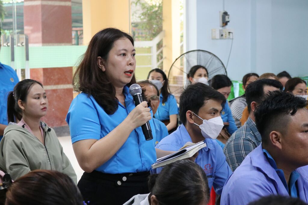 | Une électrice s'exprime lors d'une rencontre avec les députés de la province de Ninh Thuân. |