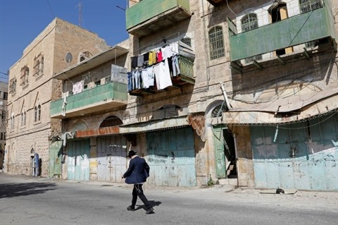| Un juif marche dans une rue de la ville d'Hébron, en Cisjordanie, le 14 octobre. |